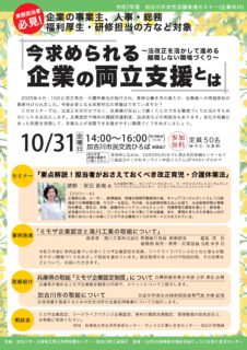 企業向けセミナー「今求められる企業の両立支援とは」10/31開催